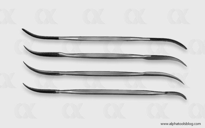 ลักษณะด้ามฟันทรงโค้งงอตรงปลาย ฟันตะไบเป็นลายตัด เหมาะสำหรับงานทำแม่พิมพ์โลหะ และ แม่พิมพ์พลาสติก